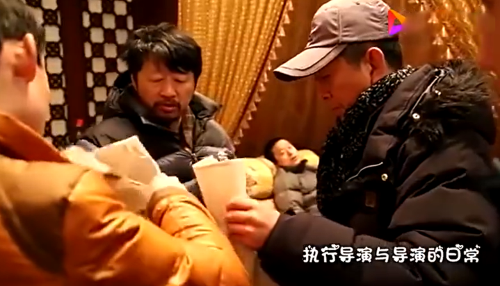 山影的导演孔笙跟他是老交情了,两东谈主有计划很好,孔导在现场还给他擦脸。